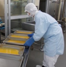 今日は天板に卵を流しいれて、焼き、1人分に切って提供します。