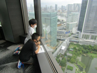子供たちは、眺めを楽しみながら、港区や自分の住む街の特徴を観察していました。