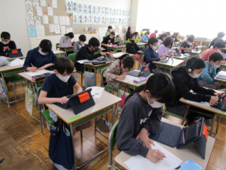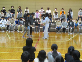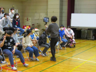 全校で体育館に集まることはできませんでしたが、オンラインで体育館と各教室をつなぎ、全校みんなで行った行事です。
