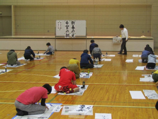 書初め会では、子供たちは、今年がよい年になるように心を落ち着かせ、一字一字丁寧に書いていました。